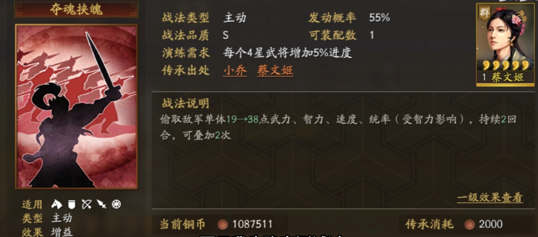 孙尚香则是游戏中的核心输出武将之一,依靠自带战法弓腰姬在普通攻击前造成额外伤害,她的爆发力和稳定性备受青睐。为了最大化输出,孙尚香适合搭配能提供增益或保护的武将,如太史慈、周泰或凌统,战法上优先选择裸衣血战、强攻或百骑劫营来提升主动战法触发频率。孙尚香的兵种选择以弓兵或骑兵为主,注重高速突击或持续输出,从而在战斗中快速叠加状态造成高额伤害。